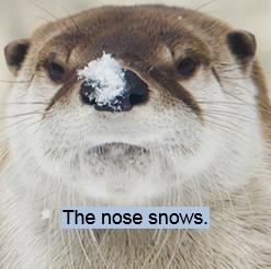 I'd bet some of it is that otters check stuff out by sniffing it, and so that's the first part of the otter that touches something with snow