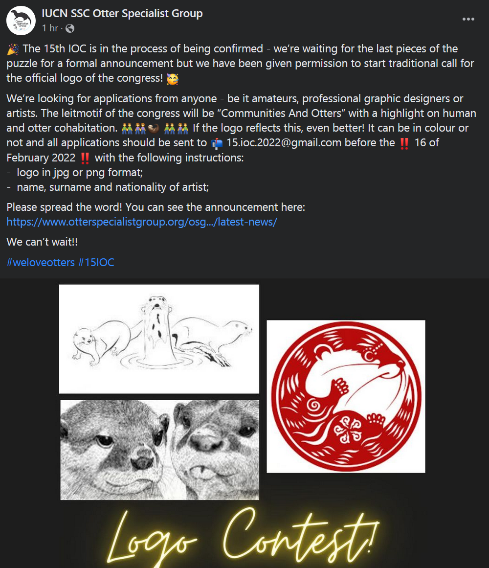 Hey guys, the Otter Specialist Group is holding a contest for the logo of the next big otter event. We're pretty good at making logos, so let's join.